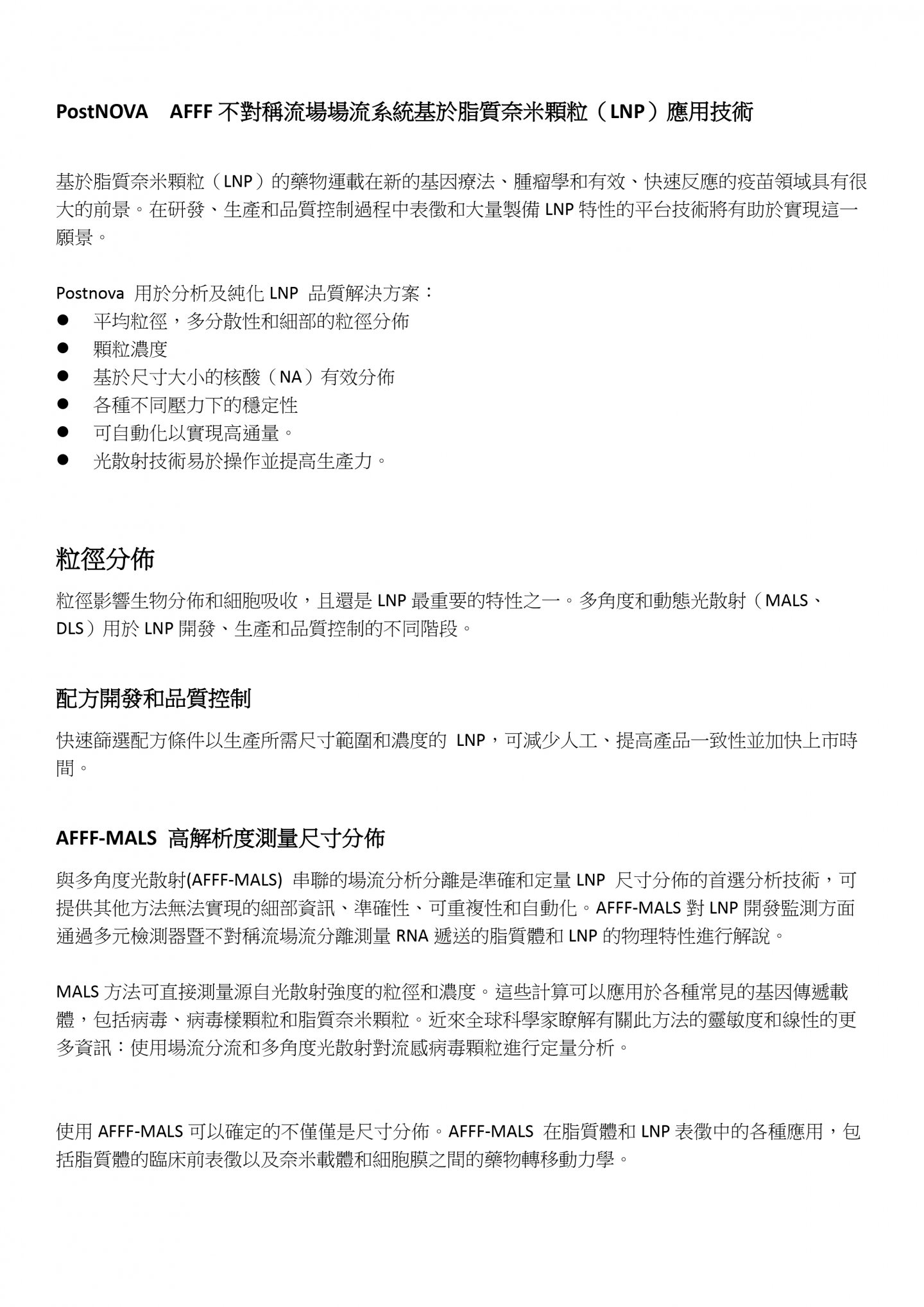PostNOVA AFFF不對稱流場場流系統基於脂質奈米顆粒(LNP)應用技術